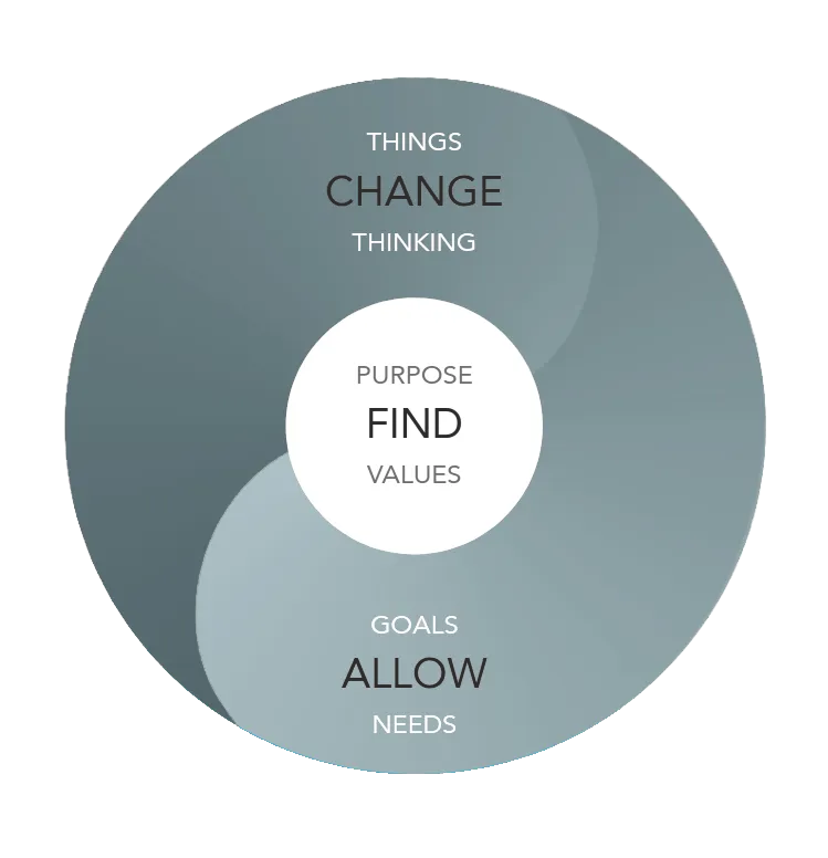 Und natürlich untersuchen wir an der Nabe – dem Finden – wieder unseren Zweck, unsere Werte und beginnen, mehr Sinn für die Organisation zu sehen und zu definieren.